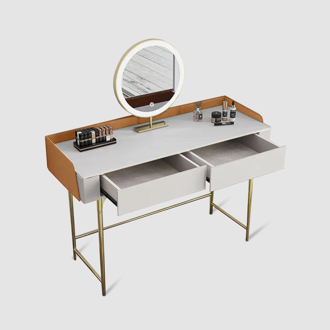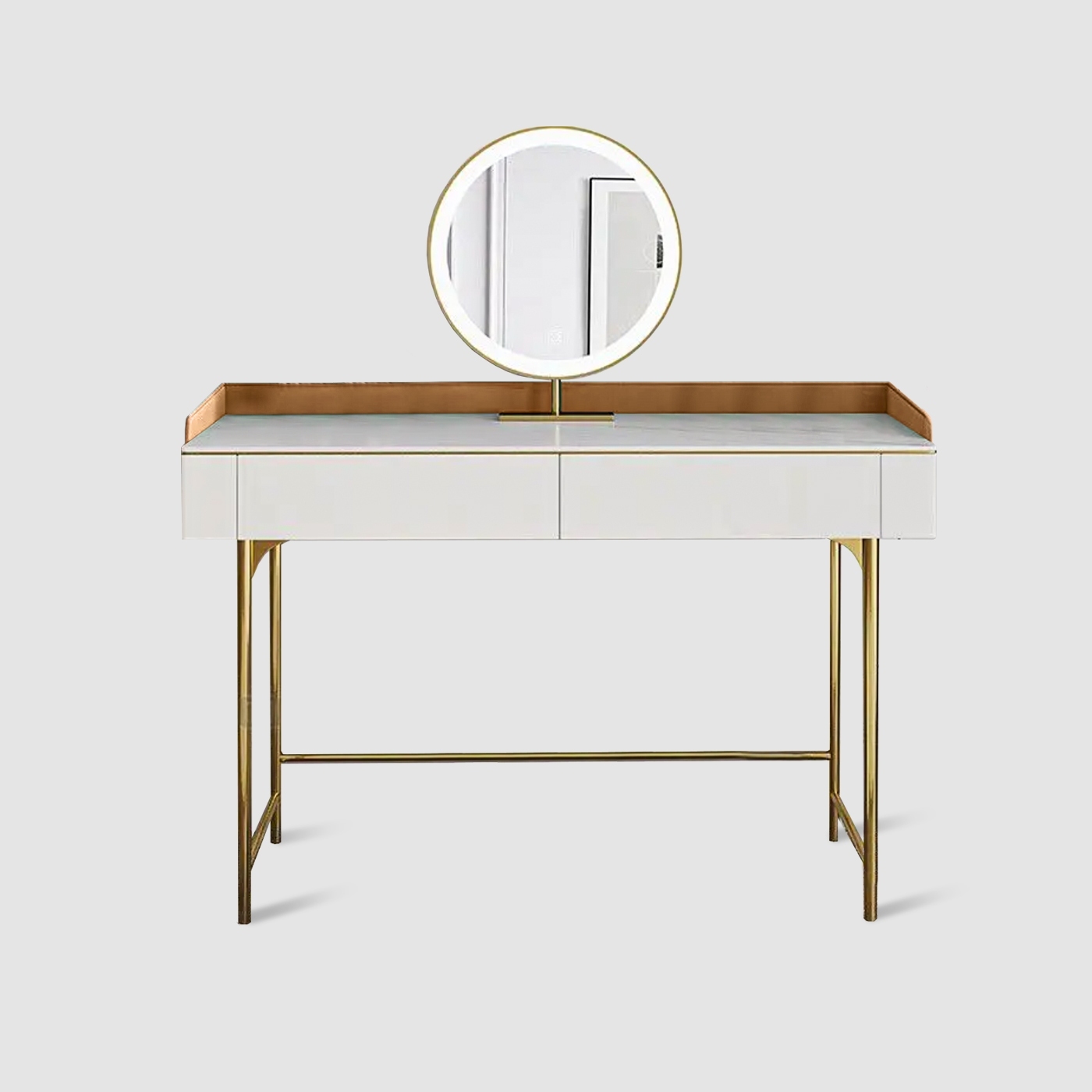 This dressing table is the perfect solution for those who appreciate minimalism and elegance. It is made in a delicate white colour and decorated with gold handles and legs, which give it a sophisticated look. The table has enough space to store cosmetics and accessories, as well as a mirror that allows you to conveniently apply makeup. This dressing table is the perfect solution for those who want to create an atmosphere of luxury and sophistication in their room.