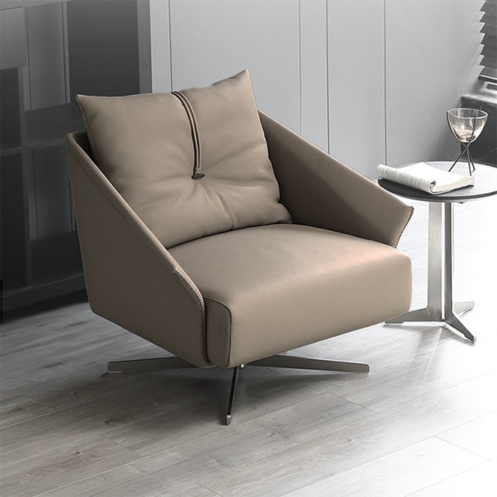 The leather upholstery of the armchair not only gives it a chic look, but also ensures reliability and durability. A high level of comfort is provided by the soft and cozy surface of the seat and backrest. The beige color of the armchair adds space and light to your interior, and its low design is ideal for relaxing in private.